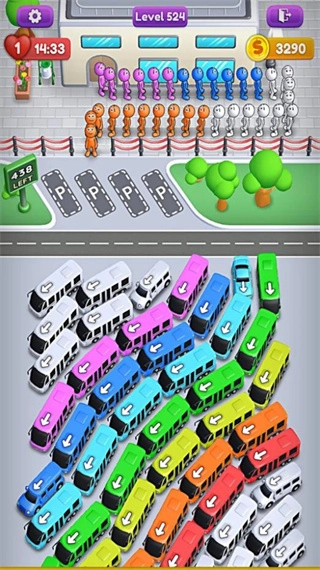 1、每一个关卡都会出现不同的车辆与对应的乘客,只要对上车顺序进行合理规划,就能顺利通过关卡。