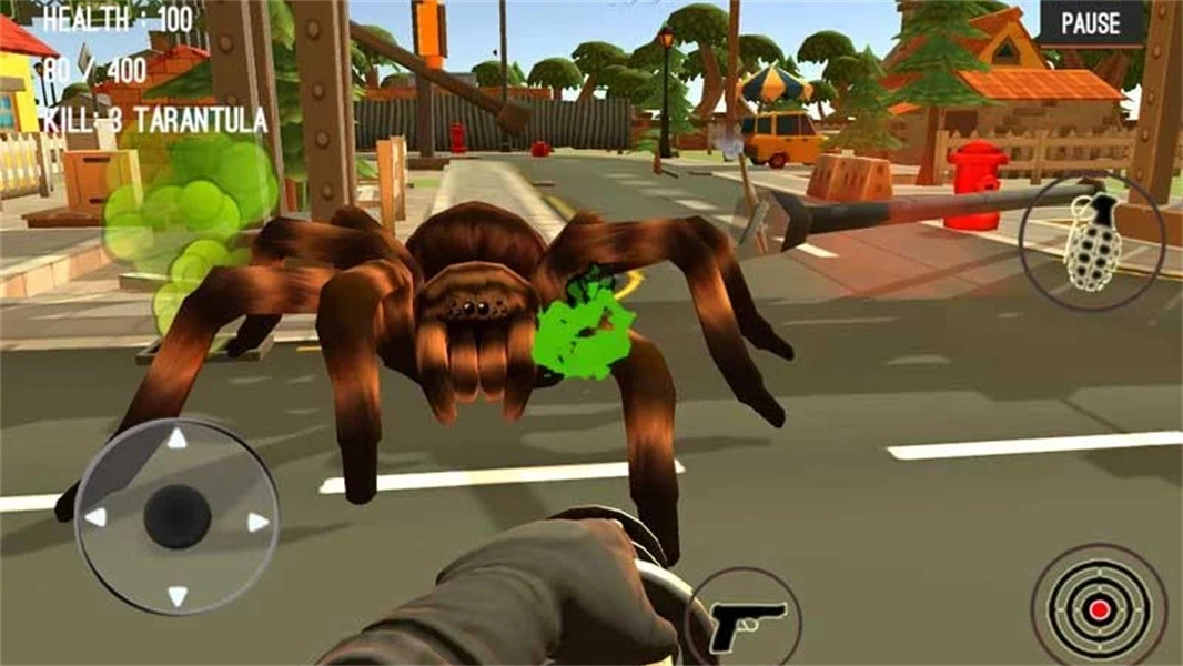 1.多维度蜘蛛生态模拟:游戏内蜘蛛种类超过20种,包含巨型狼蛛、毒液喷射蛛、隐身伏击蛛等,每种蜘蛛具备独特攻击模式(如突进、喷射毒液、群体包围)与弱点(头部、关节、腹部),玩家需针对性选择武器与战术。例如,面对高速突进的狼蛛需使用霰弹枪近战压制,而对抗远程喷射毒液的蜘蛛则需保持距离用狙击枪精准打击。