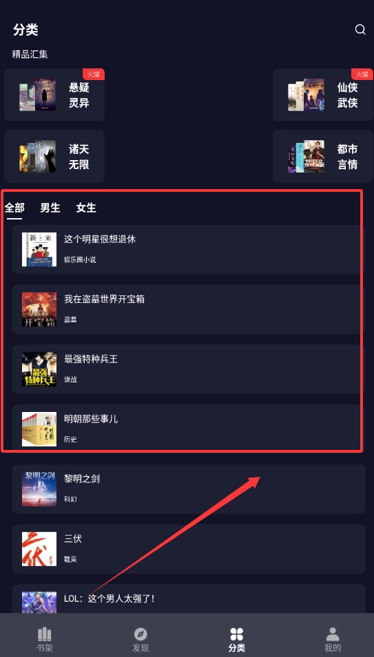 2、在主界面顶部搜索框直接输入书名,或者去分类页面按标签筛选想看的类型哦。