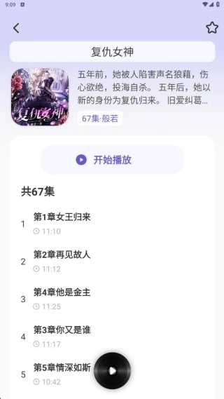 3、点击进入每本小说的听书页面,就能查看更完整的章节目录。