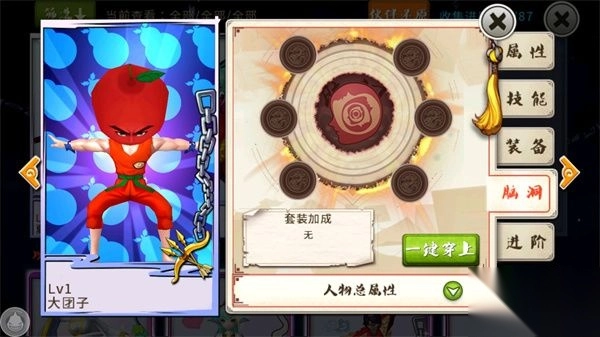 给伙伴配备不同品质的脑洞套装,可带来不同的战力提升。