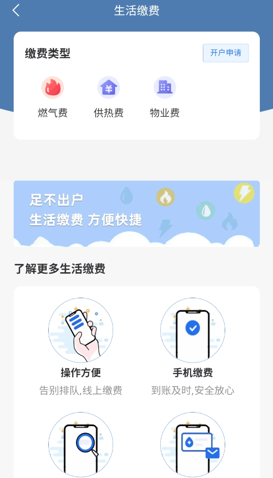2、点击“生活缴费”按钮,就能在线支付燃气费、供暖费和物业费,操作步骤简单清晰。