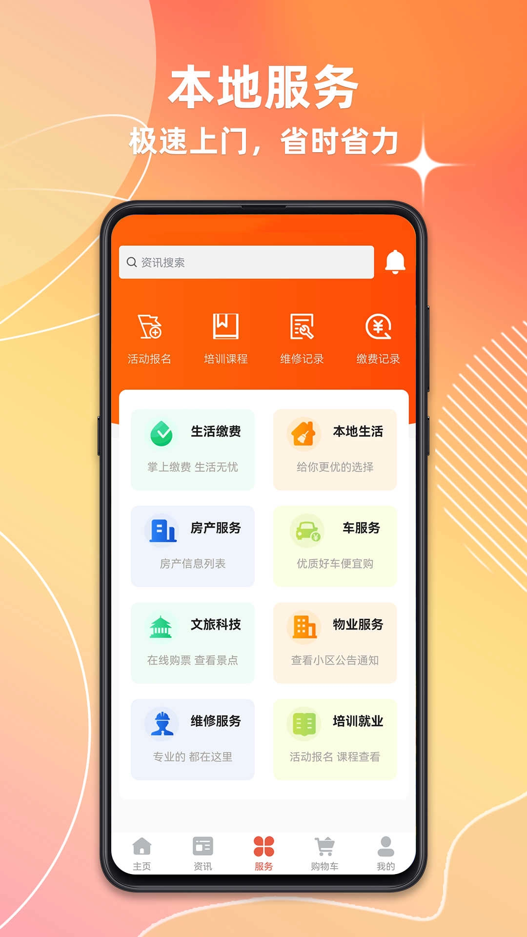 1、打开应用进入首页,这里汇聚了各类生活服务入口,同时也呈现着最新的本地新闻动态。