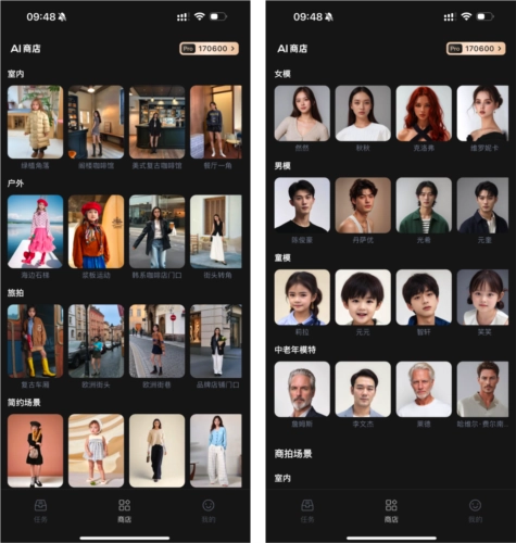 自定义专属模特:创建多样化的人工智能模特,满足不同商品的展示需求。