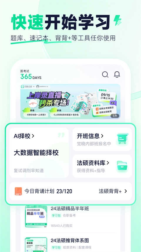 想要查找手机版觉晓法硕安装?PP提供觉晓法硕2025版。 觉晓法硕是一款专为法硕考生打造的一站式备考平台。 觉晓教育从觉晓法考中吸取成功经验,在深入了解法硕考生的需求后,推出了题库、课程、学习计划、笔记、速记等功能,针对法硕备考过程中背诵、择校、学习数据、成绩排名等特殊需求做了定制化的功能,完善了法硕考生通关的内容和方式,提升备考效率。 一、定制专属备考计划,科学量化学习目标,拒绝无用功 ①为每位考生定制专属备考计划,详细安排每天的学习任务,备考之路不再迷茫。为定制计划配套的优质课程,支持在线播放、缓存、边看讲义边学习、倍速播放等,还搭配课后题,学完马上练,精简更应试! ②学习日历精细化记录你所有的学习数据,预估分及排名反馈你的学习成绩和备考质量,并进行及时提醒!法硕是选拔型考试,对自己有一个清晰的认知很重要!拒绝“假装努力”! 二、优质题库,主观题AI智能批改 题库收录法硕近十多年的法学、非法学考试题及觉晓内部编写模拟题,所有题目按章节编排,主观题搭配AI智能评分,即做即改,题目答案和解析根据新的法条不断进行修改更新。 三、法硕背背+ 觉晓团队研发的【法硕背背+】解决了法硕考生的背诵难题!根据新版《考试分析》编写的1000+题库,特别设计的客观题体系图,便于快速记忆,有章法的进行背诵,更有5轮带背攻破记忆难关,背诵不再是问题! 四、AI择校,择校复试早知道 觉晓法硕推出的择校小程序,涵盖了近五年招收法硕的240+院校大数据,包含院校报录信息、拟招人数、复试分数、复试差额、复试科目等,调剂里包括缺额人数、有无预调剂等信息,尽可能帮助大家节省择校时间,一战成硕! 如有任何问题或建议,欢迎使用内【我的-帮助中心-建议与投诉】直接告诉我们,我们会在内直接回复。也欢迎通过社交网络平台联系我们,每一条消息我们都会认真阅读!