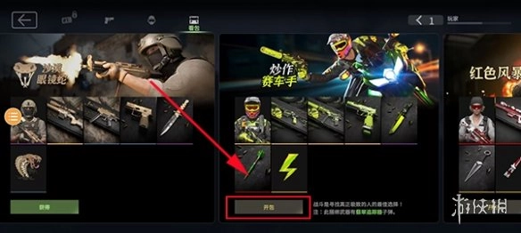 2、挑选自己感兴趣的皮肤包,接着点击“开包”来获取里面的物品。