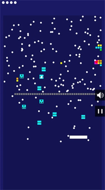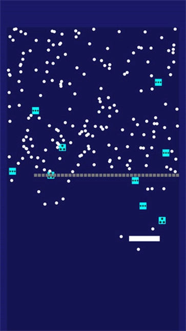 4、玩这个游戏的诀窍是把小白球打进两排方块的间隙里,就像下面这张图展示的那样,这样小白球就不会掉落,而是会一直在上方持续反弹。