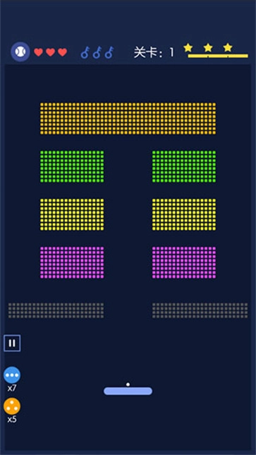 6、当玩家获得横条方块时,会额外生成三个小球,助力玩家消除更多砖块。