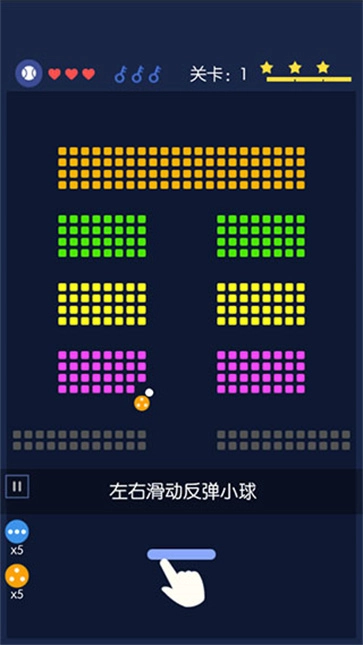 3、左右滑动操控横条反弹小球。