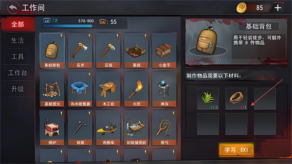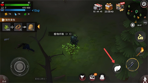 2、玩家得先制作一个背包,要是材料不够的话,就得出门去采集。