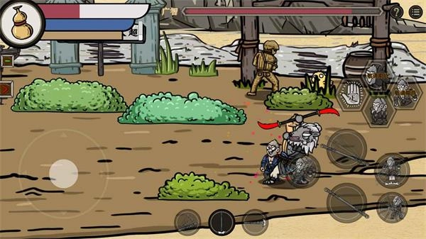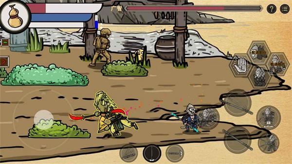 右侧的按键作用都不同,比如躲闪、重击、跳跃等。