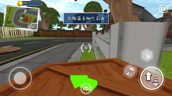 5、走到这里的围栏处,看到旁边的板箱后走过去点击领取。