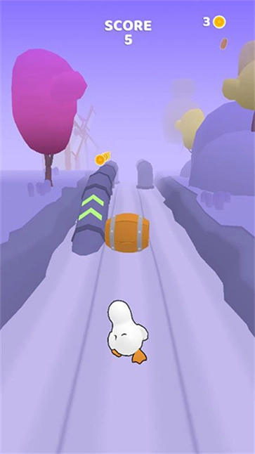 4、左右滑动屏幕操控鸭子切换赛道,躲避障碍物。