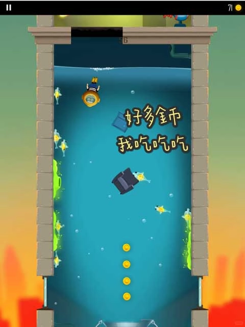 4、在这个场景里,胖乎乎的老爸身着潜水服,不停地收集大量金币。收集到的金币越多,就能兑换更多物品。