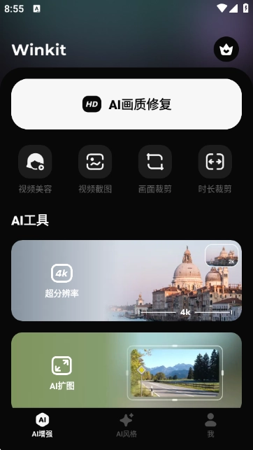 Winkit是一款融合AI智能编辑与创意特效的视频编辑应用,能帮您轻松制作出专业水准的视觉作品。它配备了肖像增强、4K升频、AI修复、抠图、色彩校正等核心功能,可让视频画质变得更清晰、更细腻。同时,应用还提供AI动漫化、创意滤镜、视频拼贴等丰富特效,不管是日常记录生活,还是进行内容创作,都能一键赋予视频电影级的质感!