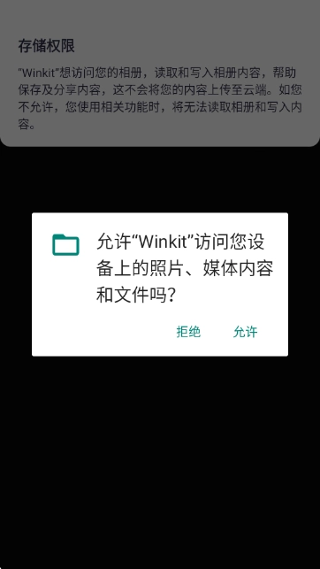 首次使用该应用时,系统会弹出存储权限请求窗口,此时点击“允许”按钮,即可授予应用访问设备中照片、媒体内容及文件的权限,这样后续就能顺利读取和保存您的创作内容了。