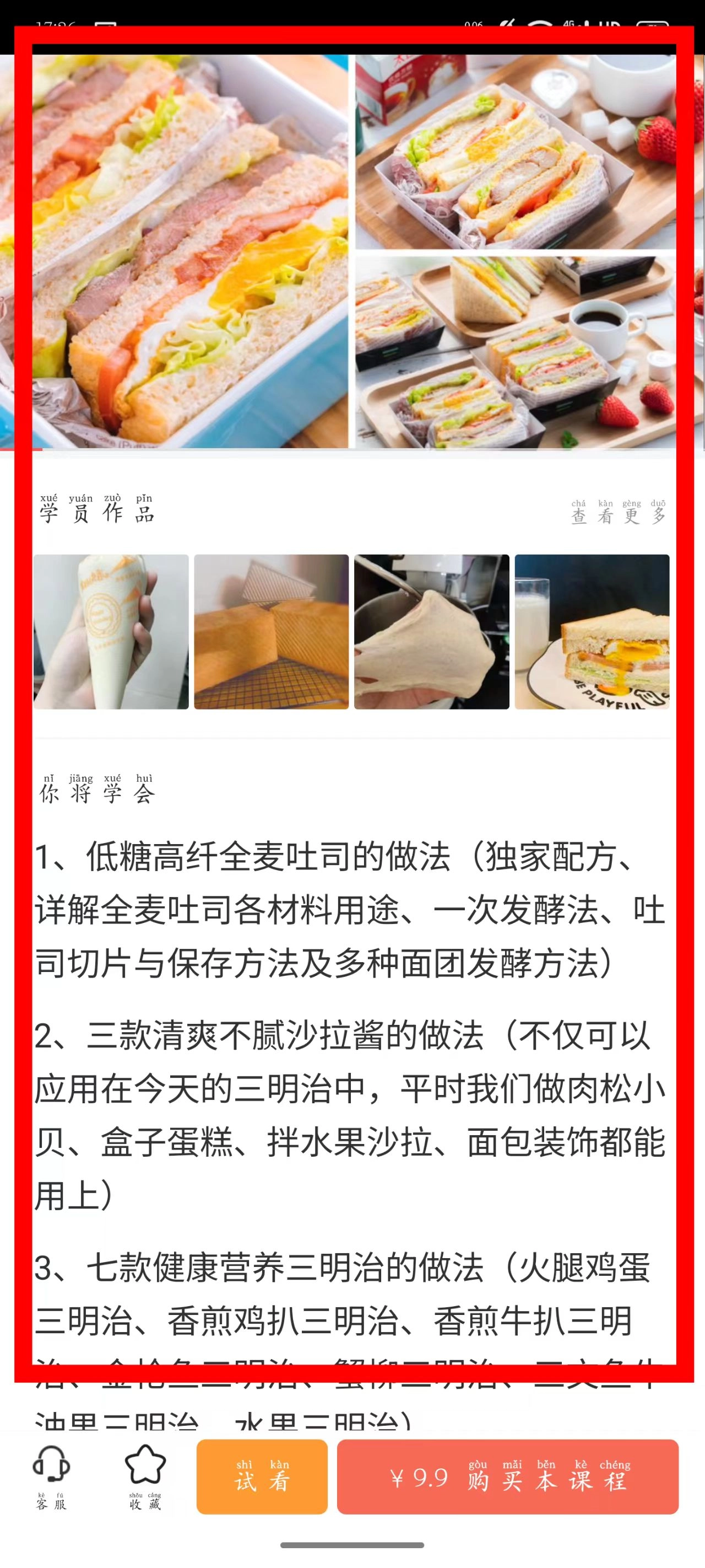 在课程详情页面,你可以查看学员作品展示,了解课程包含的学习内容。