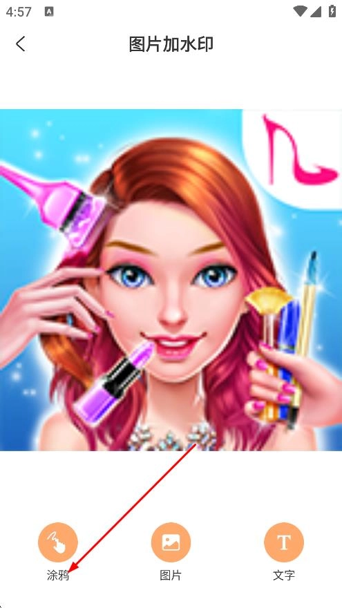3、进入编辑页面后,点击“涂鸦”功能,即可通过涂鸦操作添加水印。