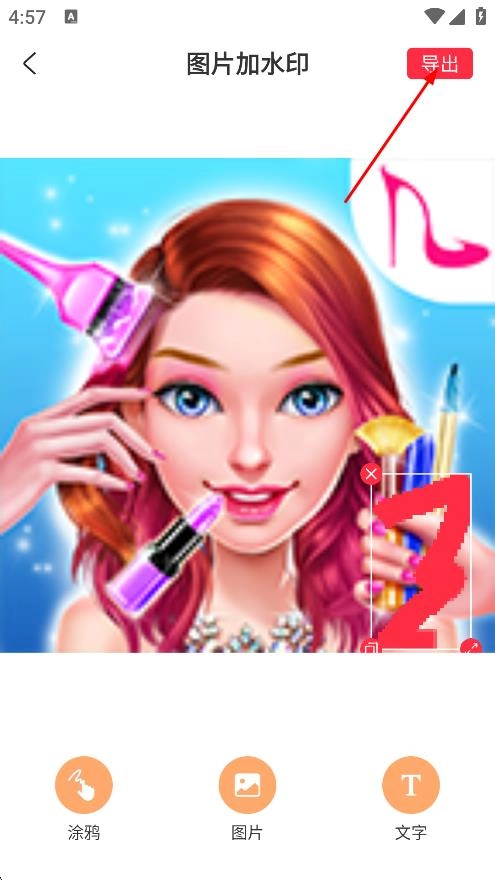 4、添加好水印后,点击导出,导出加好水印的图片。