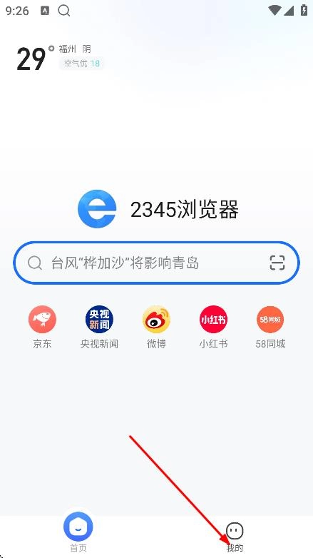 在2345浏览器首页,点击右下角我的,进入登录页面。
