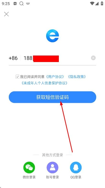 在输入验证码页面,输入收到的验证码,完成登录。