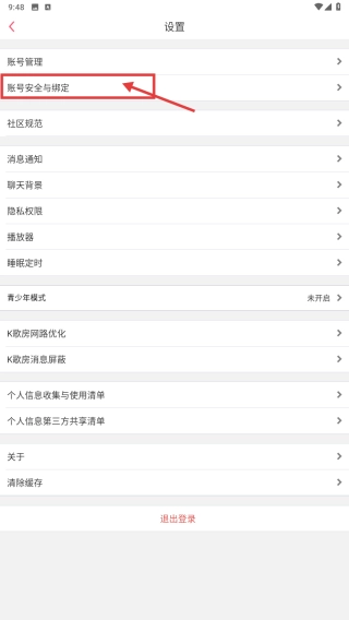 进入设置页面后,找到并点击“账号安全与绑定”选项,即可进入账号安全页面。