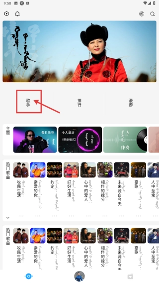 1、打开音乐类,点击歌手选项,进入歌手列表页面。