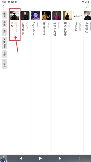 2、在歌手列表里,找到苏和这位歌手的条目,点击该条目进入他的音乐列表。