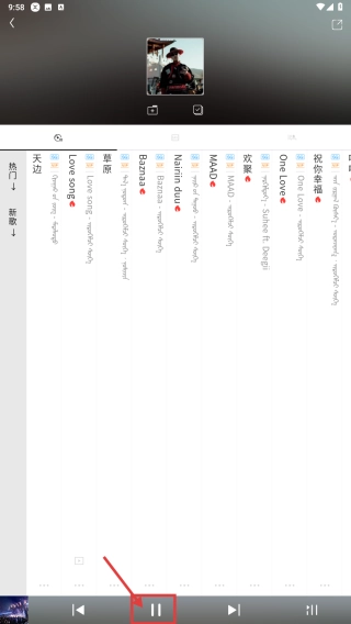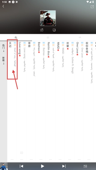 3、在音乐列表中,找到天边歌曲,点击进入播放页。