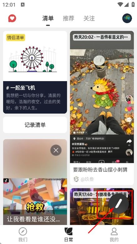 在日常页面中,点击发布图标,即可进入发布日常的选择页面。
