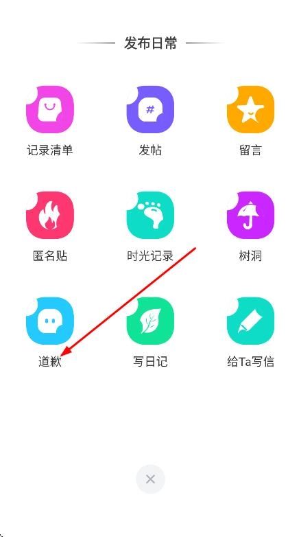 在日常发布的选择页面中,点击“道歉”选项,即可发布道歉类的日常内容。