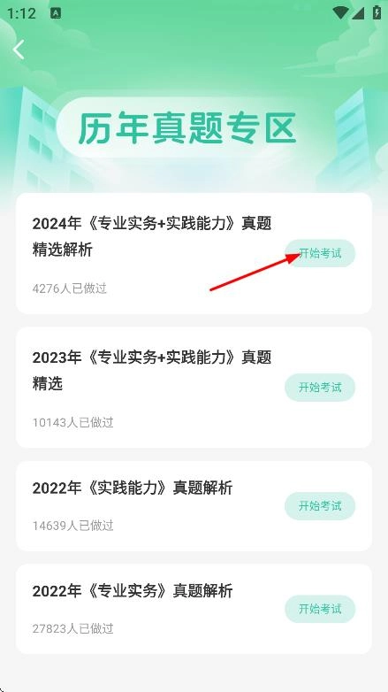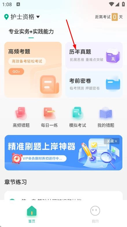 在首页,点击历年真题,进入历年真题专区。