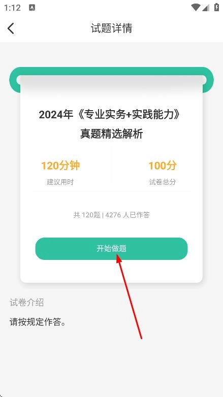 在试题详情页点击“开始做题”,即可进入真题做题页面。