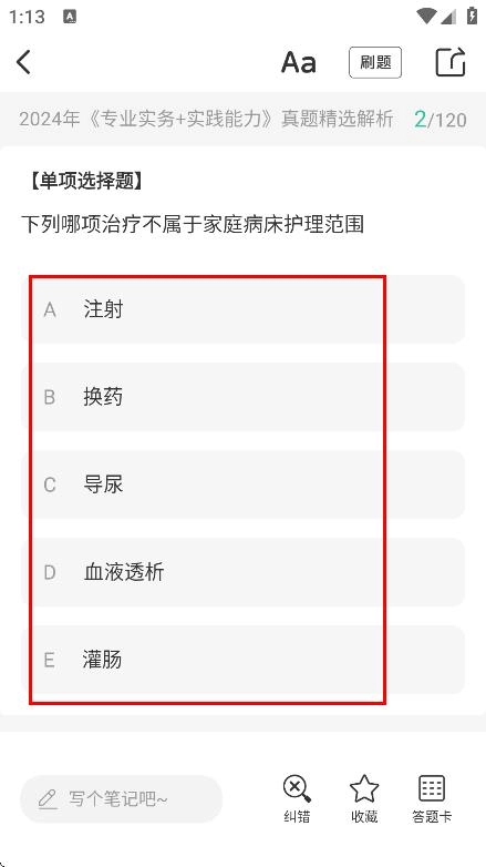 在真题做题页面,可查看并作答题目,如选项题。