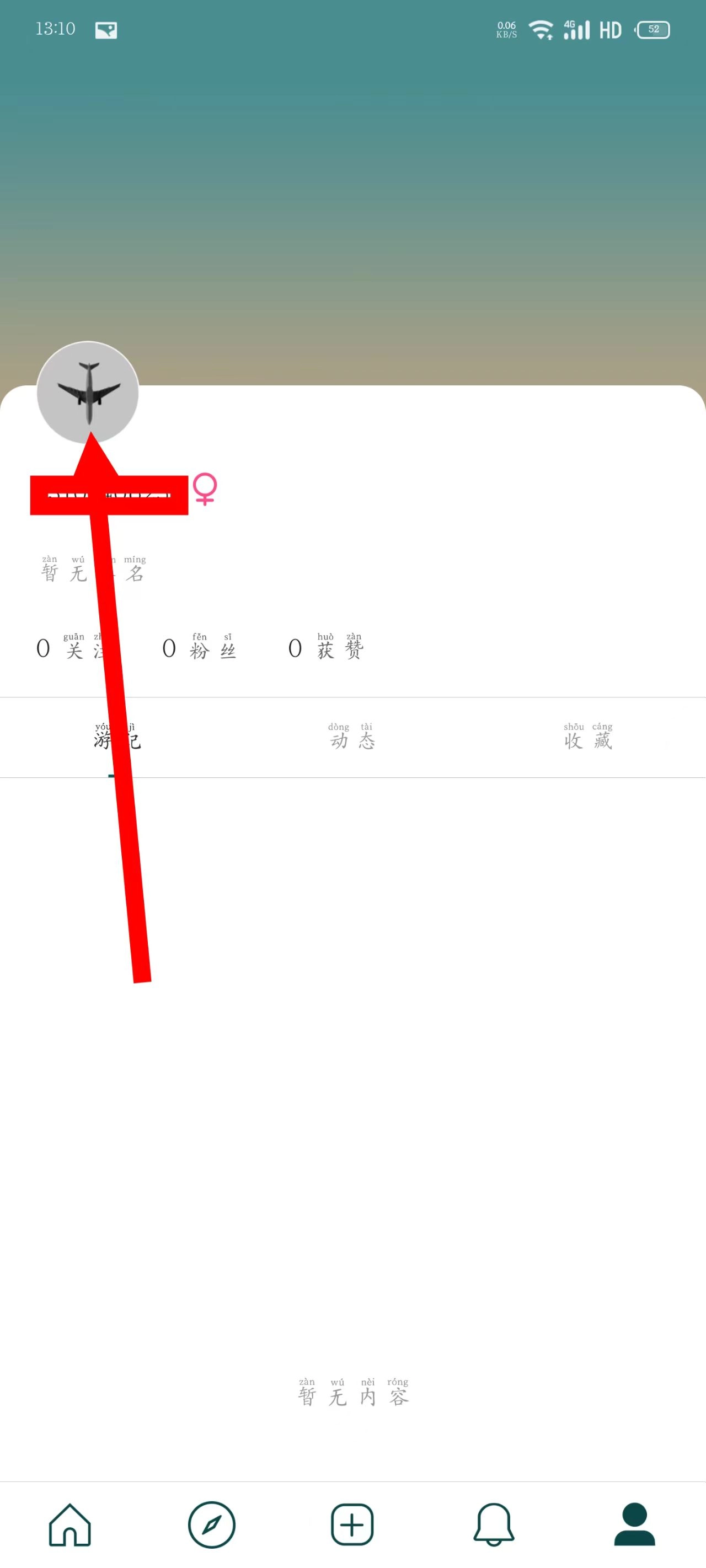 2、进入个人页面后,点击头像。