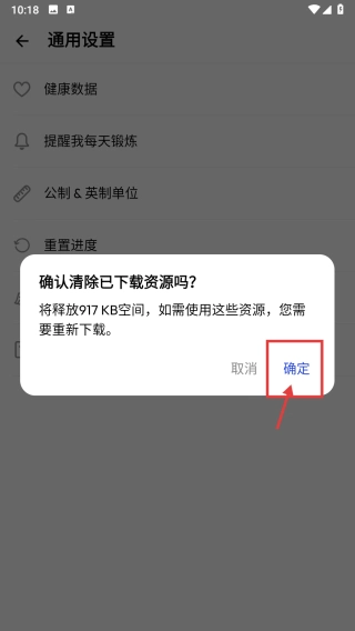 3、在通用设置页面,点击清除已资源选项,弹出确认框。