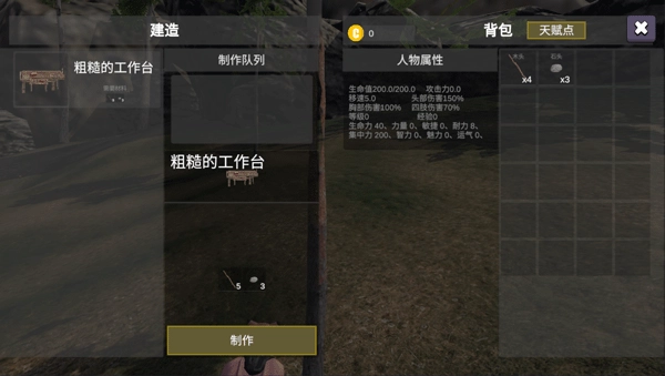 2.制作武器等物品需要依赖工作台,收集完材料后就可以开始建造工作台。
