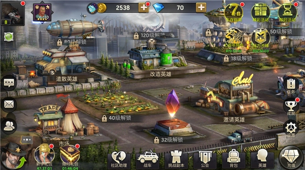 明日地平线还有模拟经营元素玩法,你将在这里建造生产类、增产类、荣耀类、探险类研究所,它们可以为你生产金币、钻石、石油等物资,助力更好的培养角色!