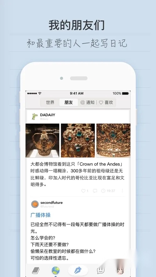 提供多媒体记录功能,支持上传照片、音频与视频,让生活点滴的呈现更生动鲜活;2、搭载云端同步系统,日记内容会自动备份至云端,全方位保障数据安全,避免丢失风险;3、配备智能搜索工具,可快速定位特定日期或主题的日记内容,查找更便捷高效;4、设有问答与社交双渠道,用户能持续分享观点与故事,轻松链接兴趣相投的同频人群。