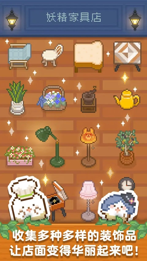 玩家能够前往家具店与抽奖中心,获取各式各样的店内装饰品,像更换面包台、增添椅子、摆放花盆、装设提灯等,依据自身的喜好来装饰店铺,从而提升顾客的满意程度。