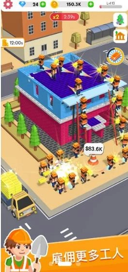 提升收益、速度和工人的等级不仅要提高建筑的效率,同时还能为你带来可观的收入,当房屋建成玩家还能在周边布置装饰,在这之后打响你的名号,前往世界各地,招揽新的工程吧!