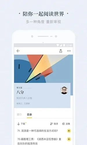 1. 优质内容多元且充实:覆盖视觉艺术、音乐、电影、戏曲、文学、建筑、设计等诸多领域,汇聚梁文道、陈丹青等顶尖创作者,传递广博知识,呈现人类文明的经典佳作。