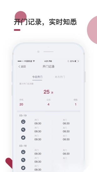 到家啦能让你一手掌握设备动态,随时浏览开门记录,还能第一时间收到设备状态变化的通知。