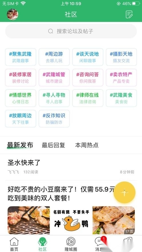 爱武隆客户端是武隆当地极具人气与影响力的生活消费类社交平台,深受数十万武隆网友青睐。在这里,大家可以畅聊热点新闻、分享新鲜八卦、交流消费心得、展示私藏美图,还能参与各类互动活动……涵盖衣、食、住、行、游、乐、购等生活刚需领域,内容丰富全面。我们始终致力于为武隆网友打造便捷的社交天地,提供贴心的本土生活服务。武隆的精彩生活,只需打开爱武隆客户端就能尽情体验。