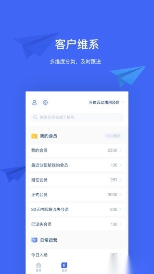 三体云管家App配备了人性化的大数据分析功能模块,能依托数据对场馆运营、销售业务以及会员情况开展自动化的分析、建模与营销活动,为场馆构建起强有力的营销支持体系。