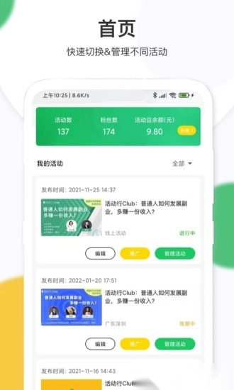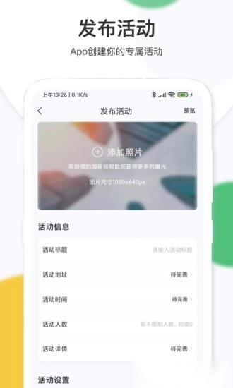 1、活动发布:能够不受时间地点限制,借助手机完成活动信息的发布与编辑操作。