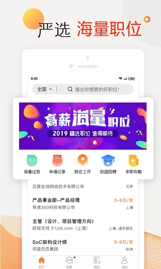 1.海量职位信息,覆盖全国各大城市及行业领域。