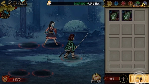 4、我们招募到的角色可能会出现在右侧的卡槽中,你只需勾选对应的角色,再点击“开战”按钮,就能安排他们上阵了。
