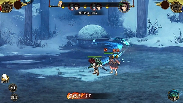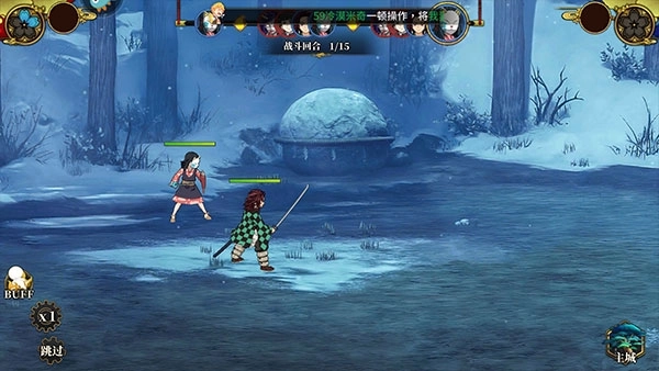 6、游戏战斗采用挂机模式,左下角支持添加增益效果(buff),同时建议开启倍速功能以提升体验。