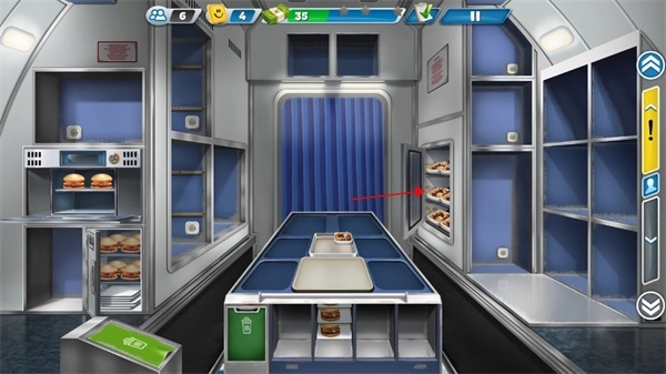 6、关于笑脸积分,送餐和收餐盘这两项服务都会获得笑脸,但要是收餐盘不及时就拿不到了。所以呢,要是你送餐的时间比较充裕,不妨先去收餐盘再送餐,或者两者交替进行,只要看到有需要收的餐盘就赶紧去处理。另外,在等待顾客点餐的时候,可以多在机舱里走动走动,这样会有乘客主动来点耳机、毯子这类物品,笑脸积分就能攒得更快一些。